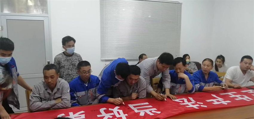 6月8日,奧美環(huán)境如期在水發(fā)優(yōu)膜生產(chǎn)基地舉行全國第21屆安全生產(chǎn)月第二周宣貫活動,生產(chǎn)車間一線作業(yè)人員全員積極參與,并在宣傳橫幅簽字。
